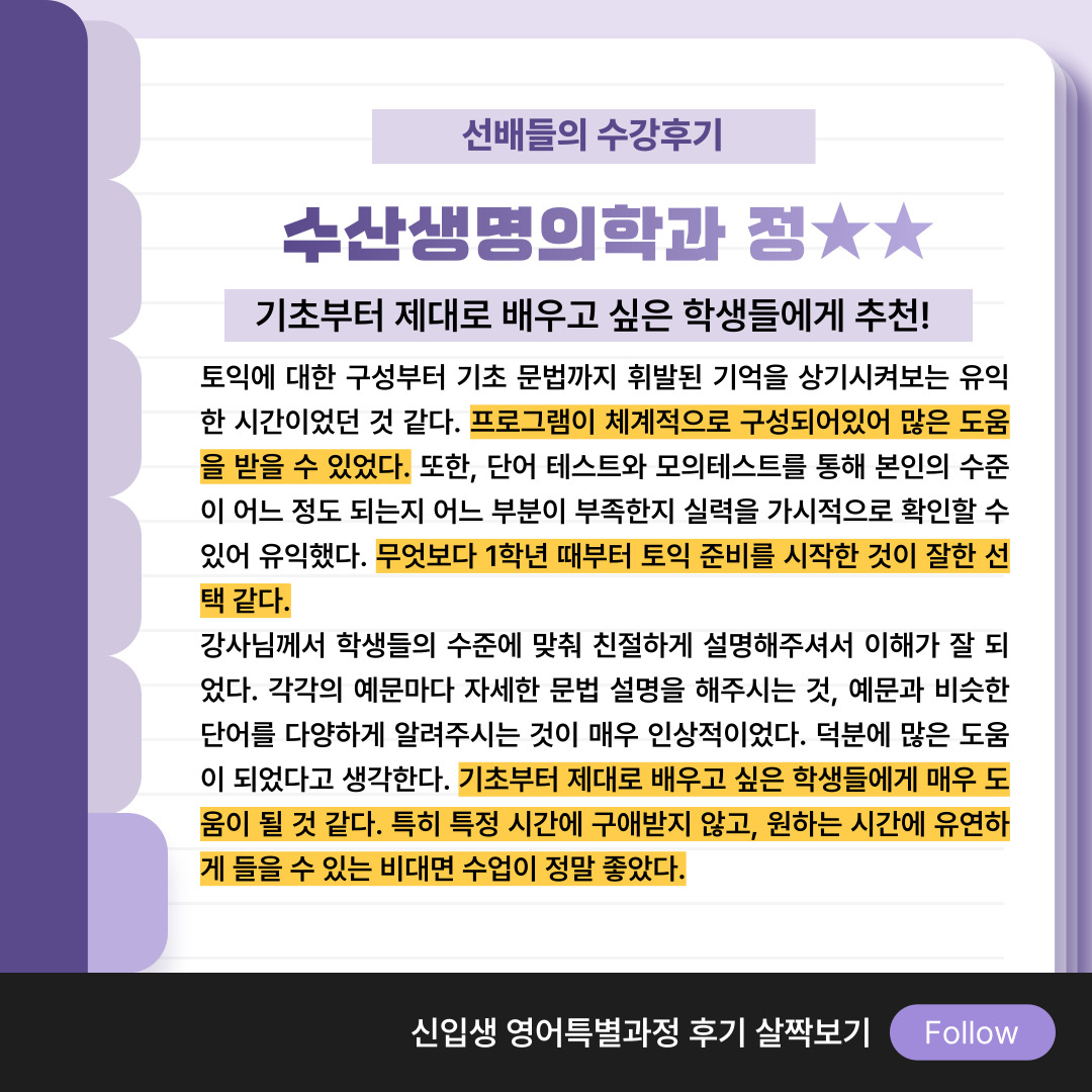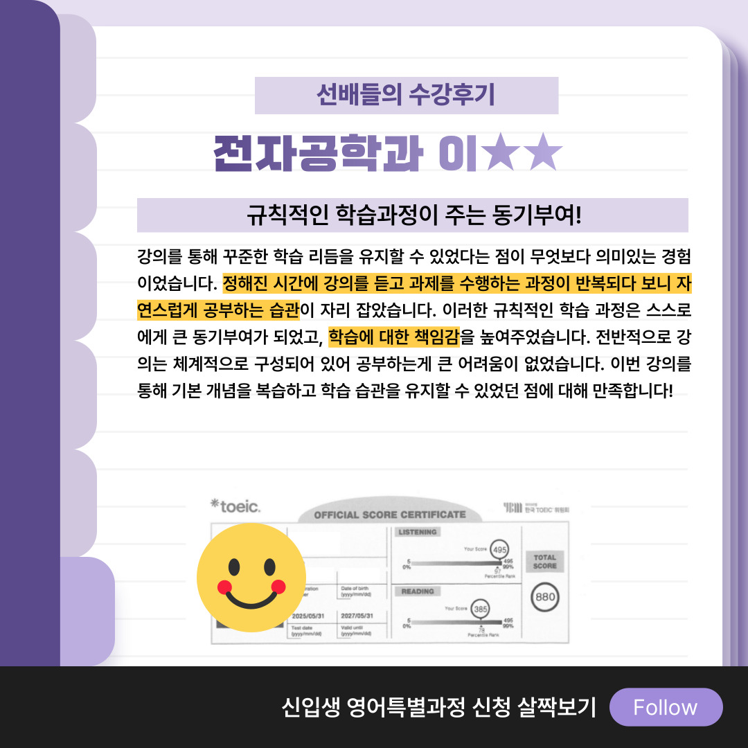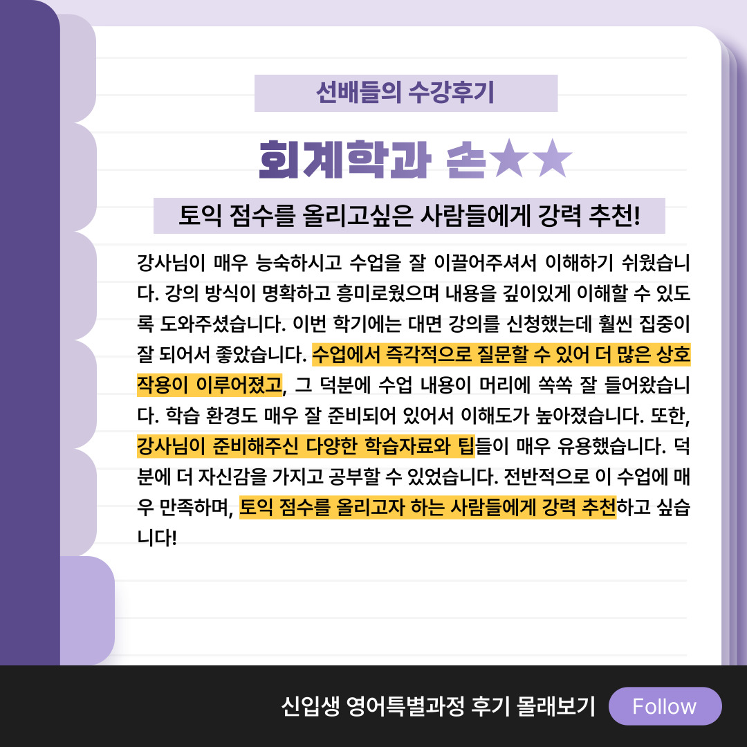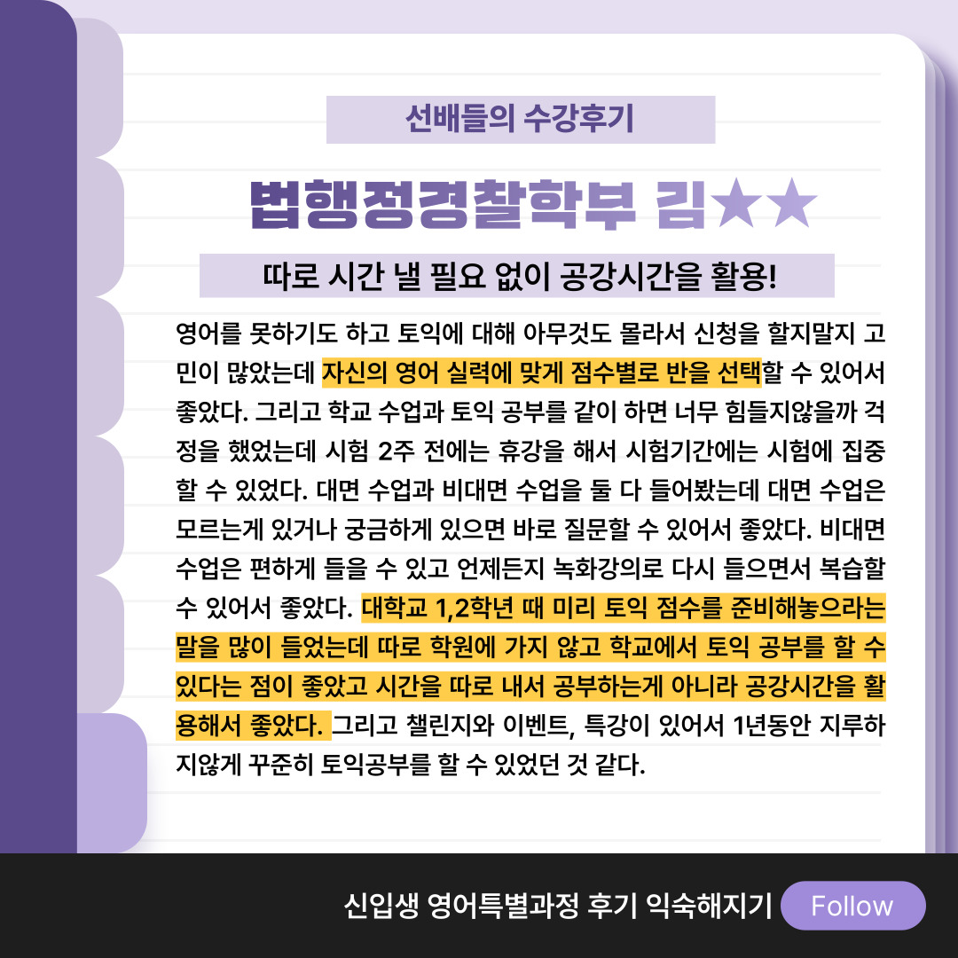학교 캠퍼스 안에서 토익 수업을 들을 수 있어 좋았어요!